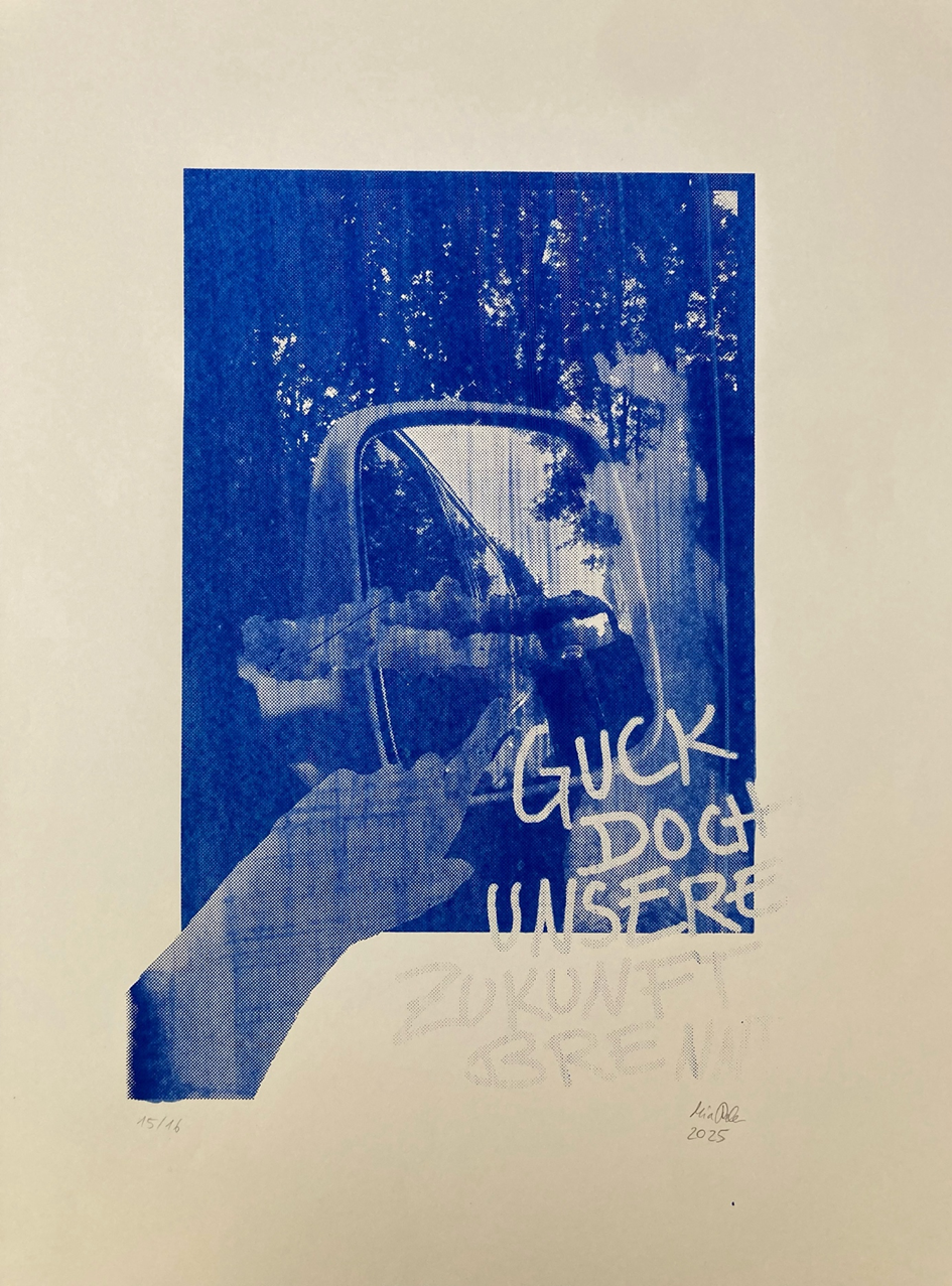 Mia Rabe, Guck doch, Siebdruck auf Papier, 50 x 65 cm, 2025